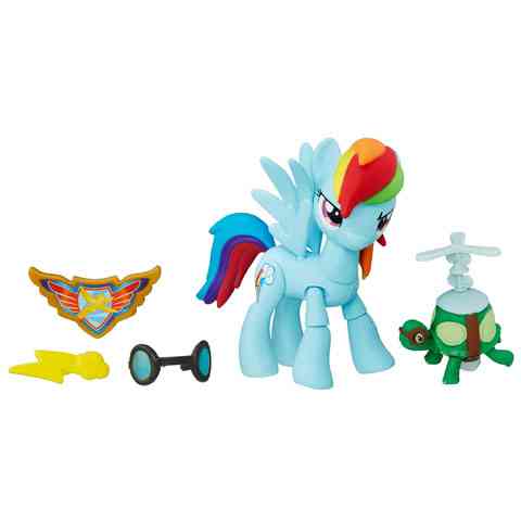 A Harmóni védelmezői között olyan népszerű pónik is szolgálnak, mint Rainbow Dash, aki ez úttal szemüveggel és karddal felfegyverkezve egy teknős pajtással erősítheti a védelmezők csapatát. Rainbow Dash több helyen is mozgatható, így különféle pózokba állíthatod. A csomagban egy kitűzőt is találsz, amelyet magadon viselhetsz bármikor. A Hasbro Én kicsi pónim figurái részletgazdag kidolgozottságukkal és festésükkel tökéletesen megegyeznek a mesékben látott szereplőkkel, így igazán nagy játékélményt kínál a gyerekek számára.