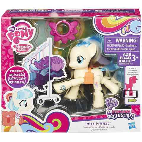 Azt mindenki tudja, hogy a pónik amikor csak teheti csinosítják magukat, és figyelemmel kísérik a divat alakulását. Azonban Miss Pommel a többieknél jobban igyekszik követni a divat változását, és ebben csomagban bizony akad egy csinos kis táska amit könnyedén a póni hátára tudsz illeszteni, akárcsak szárnyakat formázó kiegészítőt. A póni fejét és lábait mozgatni lehet, így akármilyen tartást kölcsönözhetünk neki. Éld újra az Én kicsi pónim mesefilm legszebb és legizgalmasabb részeit a játékok és természetesen a póni figurák segítségével.