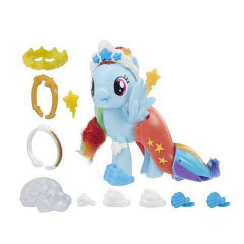 Rainbow Dash egy fantasztikus divatszettben érkezik hozzád, melyben minden olyan kelléket megtalálsz, mely ahhoz szükséges, hogy minden egyes nap csodás megjelenéssel tündököljön. A szivárványszínű sörénnyel rendelkező pegazus már önmagában is szép, de amint felveszi palástját, cipellőjét és koronáját, igazán tündöklő királynői megjelenést kap. Ékesítsd kedvenc pónidat hangulatodnak megfelelően. Gyűjtsd össze valamennyi Én kicsi pónim karakter ihlette divatszettet, vagy a cuki pónikat külön-külön, melyek segítségével eljátszhatod az izgalmakban bővelkedő mese minden pillanatát!
