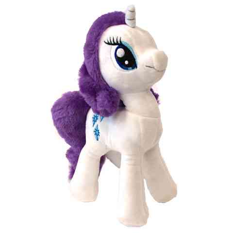 Alighanem Rarity a leggyönyörűbb póni, amit a hó fehér bundájának és csodaszép lila színű sörényének és farkának köszönhet. Még a szépségjegye is három csodálatos gyémánt,a mi nagyon jól tükrözi, hogy Rarity imádja az eleganciát és a divatot. A plüss figura a legapróbb részletekig a mesefigura alapján készült, hogy a gyerekek számára a lehető legnagyobb játékélményt biztosítsa. Természetesen a gyártás során kiváló minőségű anyagokat használtak, így a plüss figura anyaga rendkívül puha tapintású.