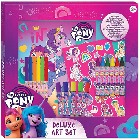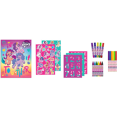 Az Én kicsi pónim mesesorozat a kislányok kedvence, éppen ezért biztosak vagyunk abban, hogy ez a szett hatalmas sikert fog aratni a rajongók körében, hiszen minden egyes darabját a mese jól ismert karakterei köszönnek vissza. A csomag természetesen mindent tartalmaz, ami a kreatív alkotáshoz szükséges, mindenek előtt egy Én kicsi pónim mintás színezőt és matrica csomagot, továbbá három sablont aminek a segítségével betűket és számokat rajzolhatnak a gyerekek. Végül, de nem utolsó sorban zsírkréták, filctollak és csillámos ragasztókat is találnak a készletben.