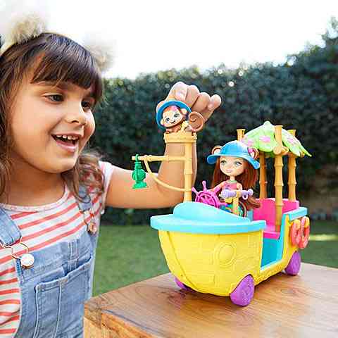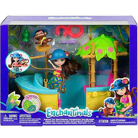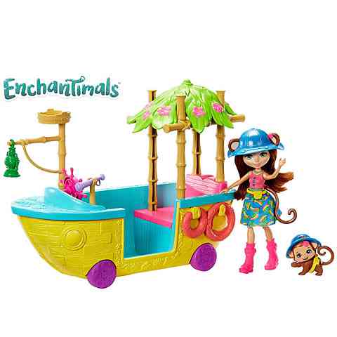 Merit Monkey főszereplésével a gyerekek most pillanatok alatt egy új kalandba csöppenhetnek, hiszen az Enchantimals világának bájos karaktere és annak kis majom állata lesz a segítségükre ebben. A szett tartalmazza a két figurát, valamint a Dzsungelhajót is, melynek kiegészítőivel izgalmas játékélményben lesz részük. A Dzsungelhajó járgány szabadon forgó kerekekkel is rendelkezik.