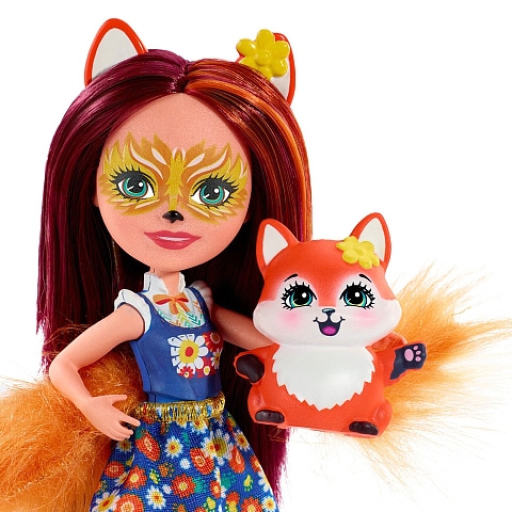 Egy valódi róka külső jegyeit viseli magán Felicity Fox, aki az Enchantimals varázslatos világának karaktere- Az emberi, ám mégis állati tulajdonságokkal felruházott baba rendkívül látványos, hosszú haját a kislányok akár formázhatják is. AZ Enchantimals lányok egyensúlyt és békét szeretnének teremteni, melyek izgalmas kalandokba keverik őket. A baba végtagjai mozgathatóak, így remek játékélményt nyújt a gyerekek számára, akik nem csak a babákat, hanem az állatokat is megismerhetik általuk.
