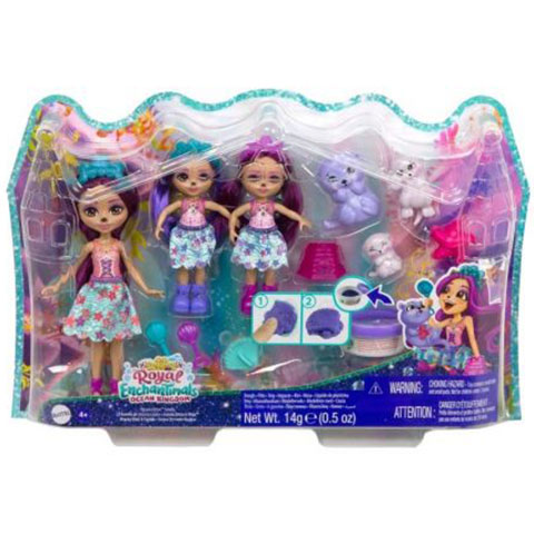 A Család az Enchantimals lányok esetében is nagyon fontos, amire a legjobb példa ez a csomag, amiben Ottavia Otter mellett a két kis testvérét Ozana és Ozara Ottert is megtalálják a gyerekek. Természetesen a csomagból nem hiányozhat Ottavia kis kedvencei sem, így egy fóka család is a csomag része, ahogy egy gyurma és számos kiegészítő. Az Enchantimals babák mindegyike egy részletgazdagon kidolgozott, tizenöt centiméteres babát és egy kisállat családot tartalmaz, így a gyerekek nagyszerű történeteket játszhatnak el, amelyeknek a kis kedvencek lehetnek a főszereplőik.