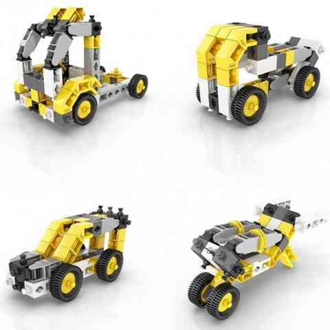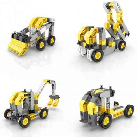 A sárga színekben pompázó munkagépek az építkezések legérdekesebb járgányai. Élvezet nézni ahogy a markoló és a homlokrakodógép dolgozik, és most akár te is építhetsz magadnak egyet a dobozban található alkatrészekből, amelyek nyolc különféle járgány összeépítését teszik lehetővé. A járművek különleges, 3 dimenziós kidolgozást kaptak, így az élénk színek és az aprólékos, szabadalmazott kidolgozás mellett funkcionális szerepet is képesek ellátni. Az építőelemeket úgy alkották meg hogy azok több oldal képesek egyidejűleg csatlakozni. A különleges kialakításnak köszönhetően milliméteres pontossággal építhetsz meg bármit. Az építőelemeket szabadon kombinálva megalkothatod a saját elképzeléseidet is.