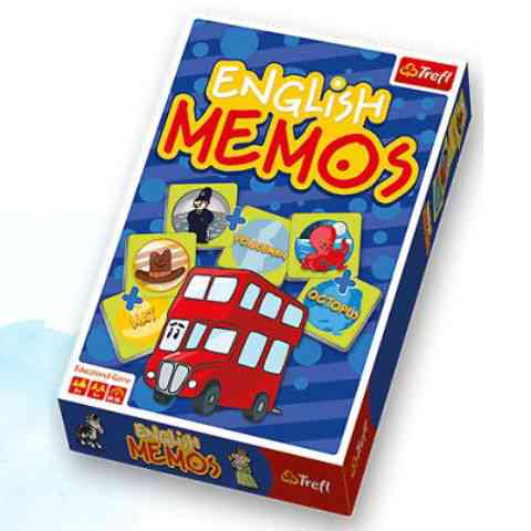 Az English Memos memóriajáték tökéletesen ideális az angolul tanuló gyermekeknek, akikkel játékos formában ismerteti meg a különböző kártyákon található élőlények és tárgyak angol neveit. A játék menete azonos a hagyományos memóriakártyás játékokéval, ám itt az egyik kártyán egy kép, míg annak párján az angol megfelelője látható. Ahhoz, hogy a gyerekek össze tudják őket párosítani, meg kell tanulniuk játék közben az angol szavakat. Természetesen az nyeri a játékot, aki a legtöbb párt tudja összegyűjteni, amíg az összes kártya el nem fogy.