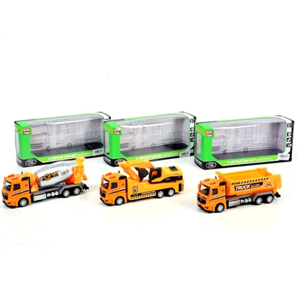 Az építőiparban nem szokatlan, hogy hatalmas teherautók és munkagépek segédkeznek egy-egy építkezésen vagy épp bontási munkálatokban. Válassz egyet a három építőipari teherautó közül, amelyek remek játéklehetőséget biztosítanak a gyerekek számára. A több mint tizenöt centiméteres kisautók rendkívül részletgazdag kidolgozást kaptak, amihez a jellegzetes rendőri festés is dukál, ráadásul a hátrahúzós meghajtás még izgalmasabbá teszi a játékot a gyerekek számára.