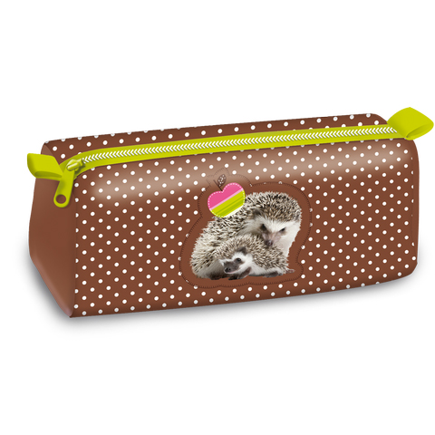 Ez a tündérien kedves sünivel és anyukájával díszített tolltartó tökéletes választás számodra, ha egy kényelmes eszközt keresel írószereid tárolására. A henger alakú tolltartóba egyterű, tágas kivitelezése miatt különböző méretű tollakat, ceruzákat, filctollakat is könnyedén el tudsz helyezni. Tetején cipzárral tudod össze zárni, a belsejében pedig mintás anyagú bélés található. Az erdei színvilágot tükröző zöld és barna összeállítású tolltartó biztosan a kedvenced lesz.