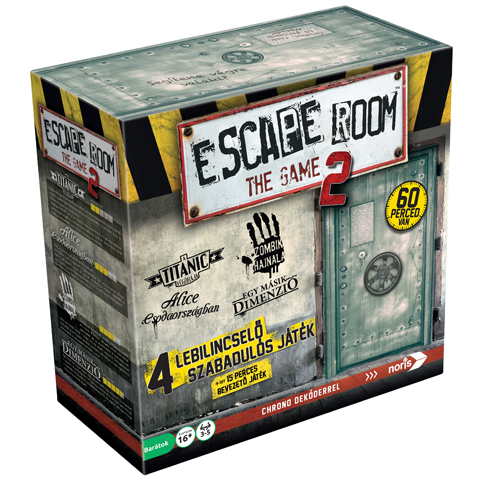 A szabaduló szobás kalandjátékok nagyon népszerűek, ám a társasjáték formába csomagolt Escape Room játékok kiválóan hozzák ugyanazt a játékélményt, így remek választás egy kalandvágyó csapat számára. Ez a doboz már a második ilyen jellegű játék, így az első csomag tapasztalatival kiegészülve négy izgalmas kalanddal számolhatnak azok akik szeretnék próbára tenni a logikájukat és a leleményességüket. A csomagban olyan izgalmas kalandok várják a játékosokat, mint a Titanic végórája, a Zombik hajnala, az Alice csodaországban és az Egy másik dimenzió. Azonban minden kaland egyezik abban, hogy a játékosoknak mindössze hatvan perc áll rendelkezésre, hogy boldoguljanak és erről a Chrono dekóder gondoskodik.
