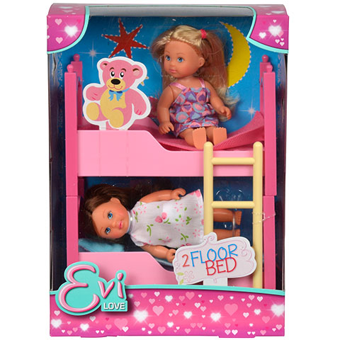 A babák is szeretik az ottalvós bulikat, hiszen ilyenkor az egész napot a kedvenc barátaikkal tölthetik, azonban ilyenkor szüksége lesz megfelelő mennyiségű fekvőheélyre is, amire a legalkalmasabb egy emeletes ágy. Ebben a csomagban nem csak az ágy, hanem két baba is megtalálható, ami dupla játékélményt ígér a gyerekeknek. Az Évi Love babák a részletgazdag kidolgozásukkal, hosszú hajukkal a kislányok kedvencei közé tartoznak, hiszen a nagyjából tizenkét centiméteres, mozgatható végtagokkal rendelkező babák egészen biztos, hogy könnyen a kicsik szívébe lopják magukat.