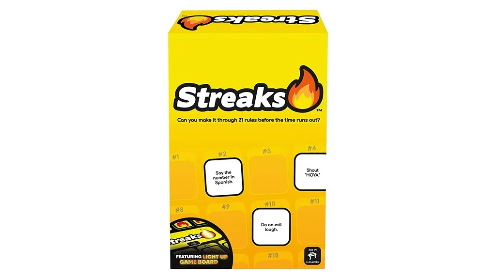 Mivel a játék 130 szabálykártyával rendelkezik, sosem játszol kétszer ugyanazt a játékot, ami miatt kiváló választás a szekrényből csoportos összejövetelekre. A Streaks hozzáadása a társasjáték-estékhez biztosan lángra lobbantja a szórakozást!