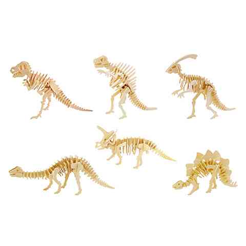 Ha kedveled az őskor hatalmas dinoszauruszait, akkor ez a különleges puzzle egész biztosan tetszeni fog, hiszen a Föld egykori urainak csontvázát állíthatod össze általa. A rettenetes Tyrannosaurus Rex-től a békés és igazán különleges stegoszauruszig és Triceratopsig a legismertebb változatok közül választhatsz. A vékony fa lapokból kivágott építőelemeket egy útmutató alapján kell összeilleszteni, és máris kész a kedvenc őslényed csontváza. A kiváló minőségű fa játék természetes és mentes minden káros anyagtól, így a gyerekek biztonságban fejleszthetik vele a finom-motorikus készségeiket és figyelmüket.