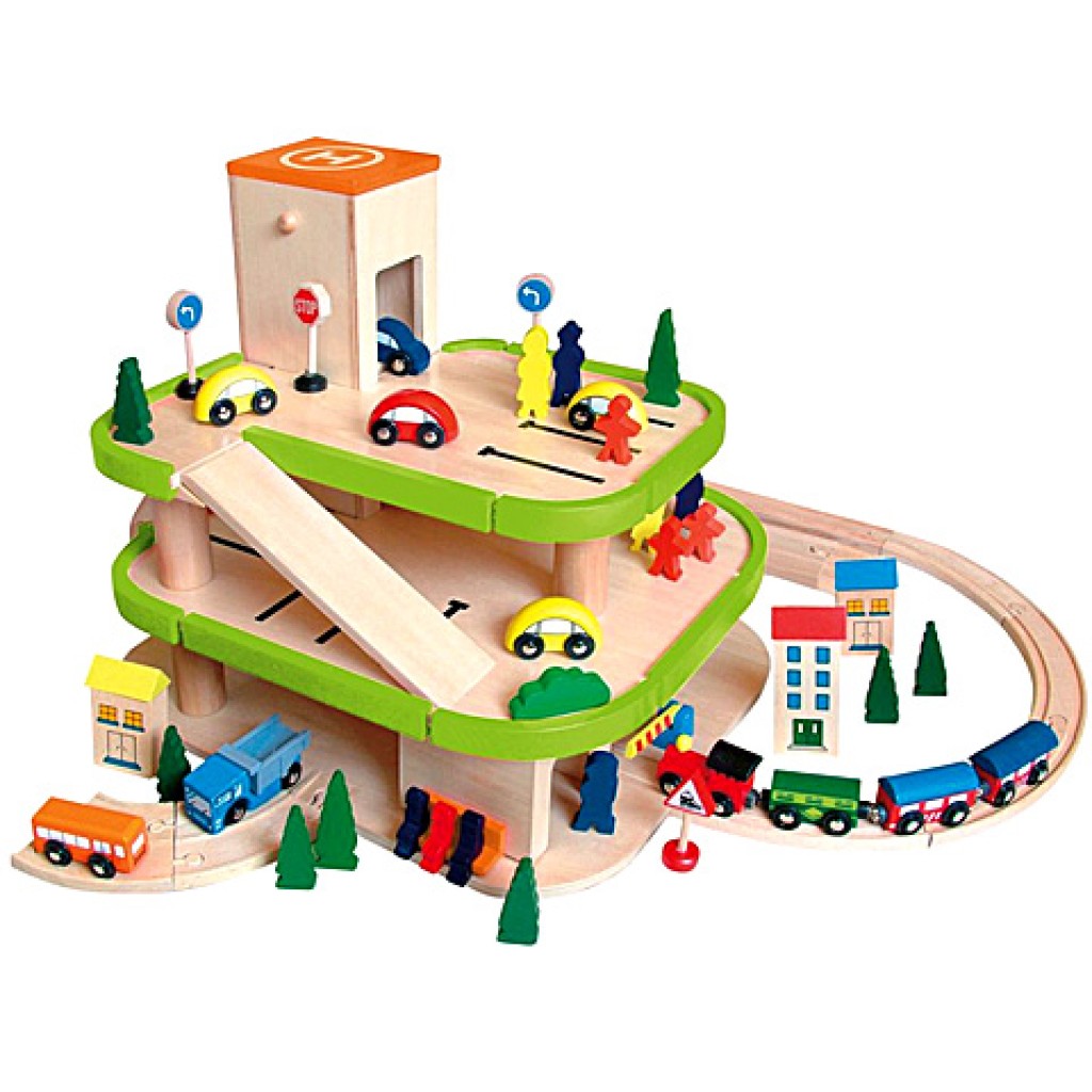 Fejleszd tovább városod, és építs meg egy igazán nagy garázst! A több emelettel is rendelkező, kizárólag fából készült színes garázsban járgányaid kényelmesen parkolhatnak, majd a lejárók használatával visszatérhetnek a forgalomba. A fa utakhoz csatlakoztatható lifttel rendelkező garázsban sok autó elfér egymás mellett, így praktikus megoldás lehet zsúfolt városodban.