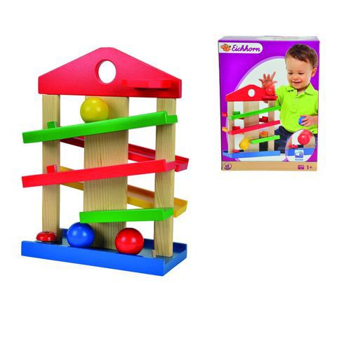 Az Eichhorn fa játékok különlegessége és egyben előnye, hogy a nem csupán szórakoztatja a gyereket, hanem készségeket is fejleszt. A játék színeinek egyértelműsége és vidámsága, a gravitáció által adott folyamatos mozgás látványa komoly ingerekkel bombázza a kisgyermeket, melynek kapcsán felfedezi a világot, tanul. A golyók leérkezése hanghatással jár, hiszen neki ütközik egy ,,csengőnek". A játék kiváló fejlesztő hatással bír minden kisgyermekre. Anyaga fa, így a gyermek olyan játékkal játszik, melynek fogása, tapintása gyermekbarát.