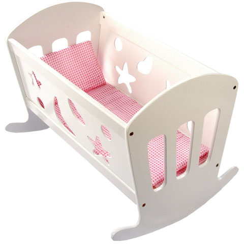 A legkedvesebb babáidnak igazán kijár az odafigyelő gondoskodás, amit ebben a nagyszerű fehér fa bölcsőben meg is kaphatnak. A bölcsőben a harminckét centiméteres babák is kényelmesen elférnek, csak be kell takarnod őket, és miközben mesélsz vagy énekelsz nekik egy altatót, lágyan ringathatod őket. Meglátod egy szempillantás múlva már az igazak álmát fogják aludni. Az időtálló fa játék teljesen biztonságos a gyerekek számára, hiszen a díszítésül használt festék vízbázisú és káros anyagoktól mentes.