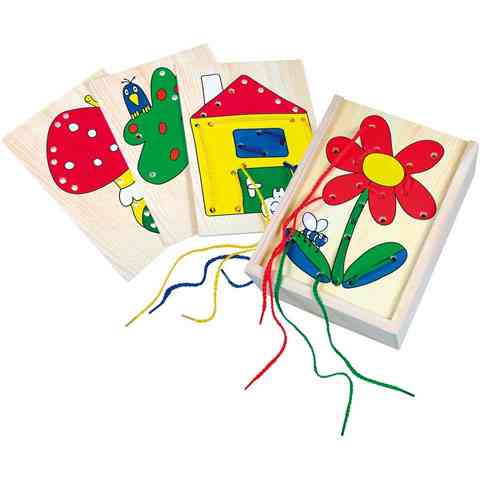 A fa készségfejlesztő fűzős játékkal mókás kaland veszi a kezdetét. A gyerekek kéz-, és szem koordinációs készségeit hatékonyan fejleszti a játék, melynek lényege, hogy a kicsiknek a zsinórt át kell vezetniük a különböző mintával ellátott képeken lévő lukakon. A kicsik egyre jobban bele fognak jönni gyakorlás közben az ügyességi játékba, így igazi sikerélmény lesz, mire a végére érnek, mely hozzájárul az egészséges önbizalom kialakulásához.