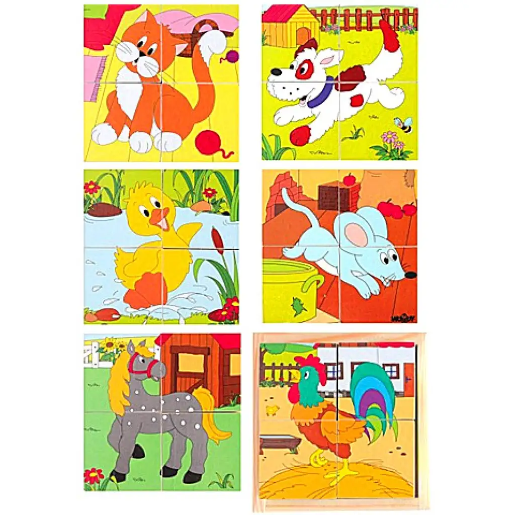 A háziállatokat valószínűleg minden gyermek ismeri, de vajon ki tudják rakni belőlük a képeket is? A kockák minden oldala mintázott, így hat különböző állatot illeszthetnek össze a kockák forgatásával és elhelyezésével. A különleges kis mesekockákkal így nem csak remekül elfoglalják majd magukat a gyerekek, hanem a kézügyességük és megfigyelőképességük is fejlődik.