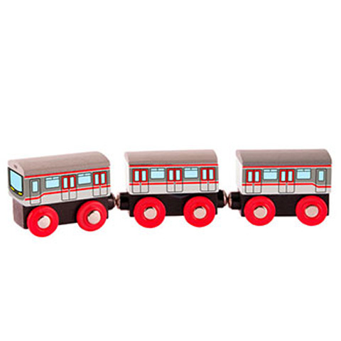 Ezzel a szuper fa játékmetróval a gyerekek nagyszerűen eljátszhatnak akár egy egész fából épült városban, amihez csupán megannyi építőkockára van szükség, és néhány figurára, amelyekkel be lehet népesíteni. Ez a fa metro szerelvény három kocsiból áll, mindegyik szabadonfutó kerekekkel van ellátva, ami könnyű gördülést biztosít a gyerekszoba padlóján és szőnyegen egyaránt. A szerelvény kocsijai mágnessel kapcsolódnak egymáshoz, és részletgazdag festés teszi még jobbá a játékélményt.