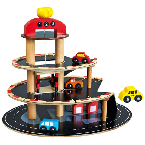 A három szinten kiváló játék veheti kezdetét a minőségi fajáték szettel, hiszen a parkolóház emeleteit nem csak az emelkedő úton járhatják be a kisautókkal, hanem működő lift is a gyerekek rendelkezésére áll. A garázsban az alsó szinten lehetősége van az autósoknak, hogy megtankolják a járgányaikat. A három szintes parkolóházhoz négy darab fa kisautó is jár, amelyek kényelmesen elférnek a felvonóban is. Az időtálló fa játék teljesen biztonságos a gyerekek számára, hiszen a díszítésül használt festék vízbázisú és káros anyagoktól mentes.