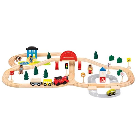 Már a legkisebbek is megismerkedhetnek a vonatozás és a vasútpálya építés legcsodálatosabb élményével, hiszen ebben a készletben egy hetven darabot tartalmazó vasút szett található. Az pálya megalkotása során egyenes és íves szakaszok mellett elágazásokat, és még egy hidat is találsz, így igazán változatos nyomvonalat alkothatsz meg. A vasúti pálya mellett pedig épületekkel, autókkal és persze emberekkel varázsolhatod az egész játékot életszerűvé. Természetesen kombinálhatod a pályát már Bino fa vonatpályákkal.