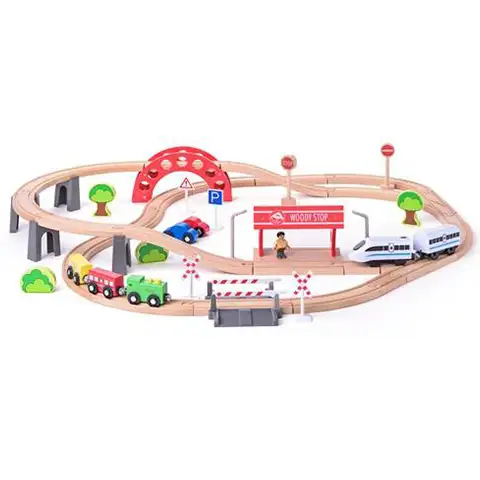 Fa vonat vasútpálya elemes mozdonnyal 60 darabos szett - WoodylandFa vonat vasútpálya elemes mozdonnyal 60 darabos szett - Woodyland