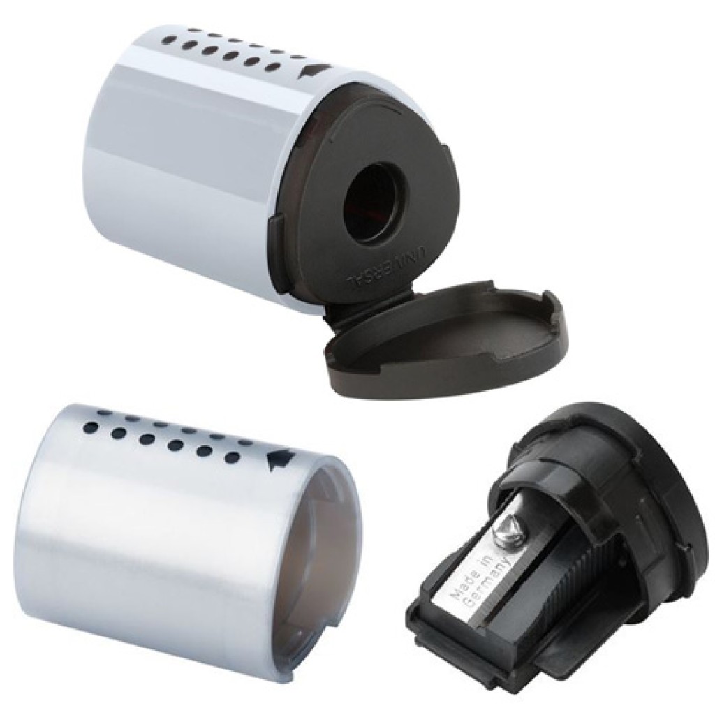 Egy igazán elegáns és praktikus hegyezővel bővítheted az írószerkészleted. A Faber-Castell Grip sorozatához tökéletesen illeszkedik ez az ezüst színű hegyező, ami nem csak a klasszikus háromszög formát követi, hanem a jellegzetes csúszásgátló pöttyökkel is el van látva. A védőkupak alatt található hegyezővel minden fajta ceruzát könnyedén tű hegyesre tudsz faragni, a gyűjtőnek köszönhetően pedig a fa forgácsok sem piszkítják össze a környezeted, hiszen az egy gyűjtőbe kerül, amit egyenesen a kukába üríthetsz.