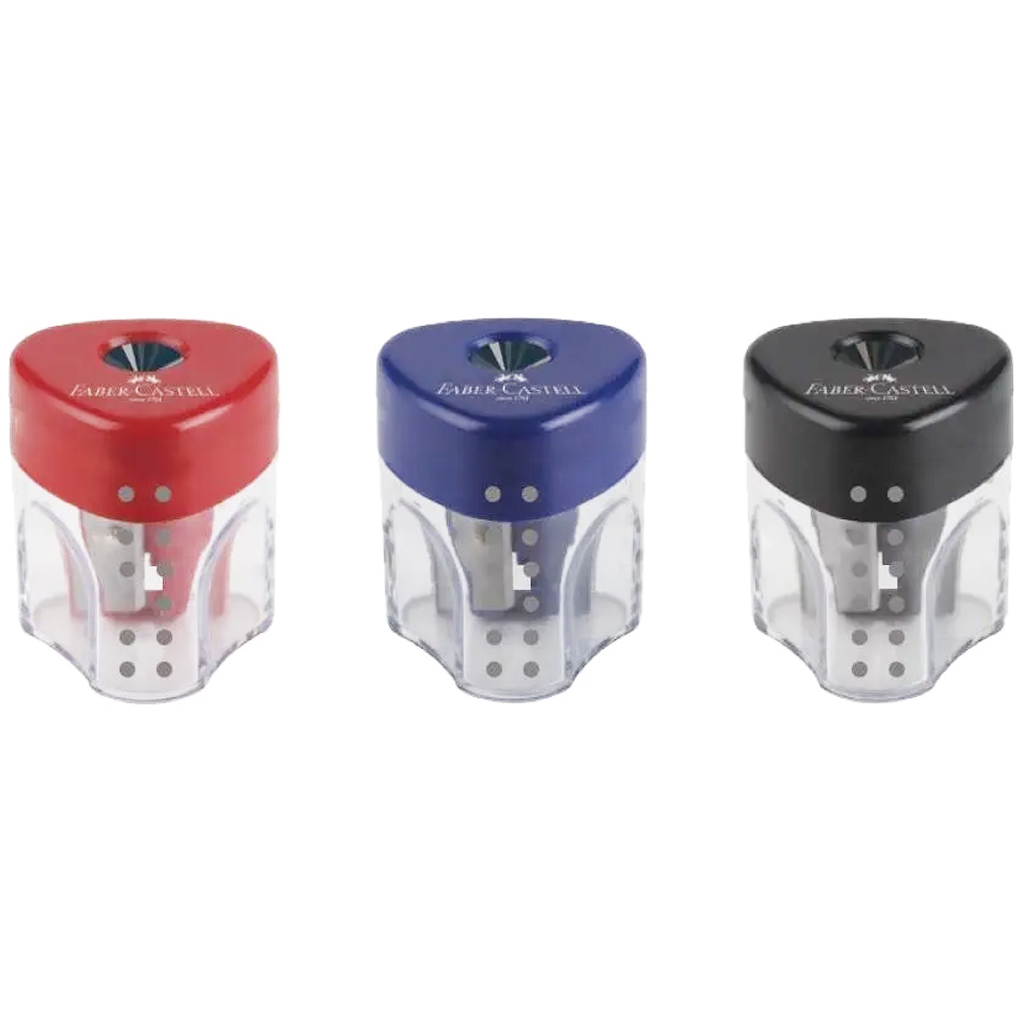 A Faber-Castell Grip tartályos hegyező egy kompakt, stílusos és praktikus megoldás minden iskolás tolltartójába. Ha szeretnéd, hogy gyermeked ceruzái mindig tökéletesen hegyezettek legyenek – anélkül, hogy a forgács az asztalon vagy a padlón landolna –, akkor ez a hegyező ideális választás lesz számára. A különféle színek (piros, kék, fekete) lehetővé teszik, hogy mindenki megtalálja a saját stílusához legjobban illőt.