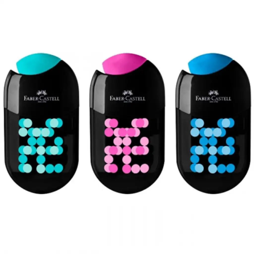 Faber Castell: Két lyukú tartályos hegyező radírral, többféle változatbanFaber Castell: Két lyukú tartályos hegyező radírral, többféle változatban