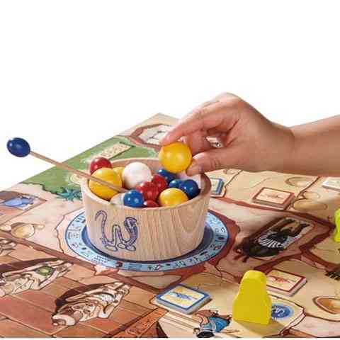 Szegény fáraót gonosz átok sújtja, és csak a legokosabb és legügyesebb kalandosnak van rá esélye, hogy megszabadítsa tőle. A fáraó sírkamrájába bejutni közel sem olyan egyszerű feladat, mint ahogy azt gondolná az ember! Minden játékosnak a lépése előtt ki kell vennie egy kerek követ a fáraó csapdájából anélkül, hogy egy másik kő vagy a fáraó különleges pálcája is kiesne onnan. A kalandoroknak út közben szkarabeuszokat is gyűjtenie kell, hogy ha a piramison belül a múmiával találkozik, akkor az továbbengedje őt. Ráadásul, ha mire a sírkamrához érsz, és nem marad legalább két szkarabeuszod, esélyed sincs belépni oda, így nem tudod megszabadítani a fáraót az átoktól! Egy roppant szórakoztató ügyességi játék gyerekeknek, három különféle játékverzióval.