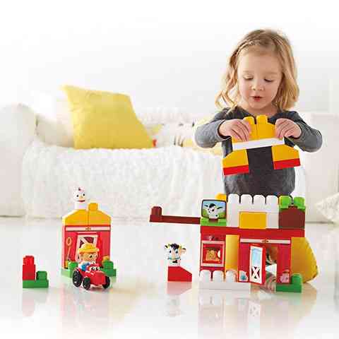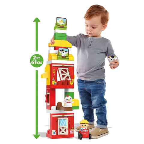 Hatalmas építkezés zajlik a farmon, és az állatok kíváncsian lesik, hogy végülis milyen lesz az új istáló. Csak rajtad áll, hogy egy hagyományos elrendezésű istálót építesz, vagy egymára helyezed az elemeket és egyetlen hatalmas tornyot készítesz. A Mega Bloks építőelemei kifejezetten a kisgyerekeknek lett kitalálva, így az alig néhány darabra szedhetőek, tehát nem tartalmaznak olyan kis alkotóelemeket, amelyeket a gyerekek lenyelhetnének, és a nagy méretüknek köszönhetően a kicsik könnyen meg tudják fogni, és az összeillesztésük sem okoz gondot.