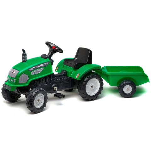 A Farm Master 720i a FALK egyik legsikeresebb modellje, mely ezúttal utánfutóval érkezik a még szórakoztatóbb játék érdekében. A traktor pedálos meghajtást kapott a könnyű haladás érdekében és a valódi terepmintás kerekeknek köszönhetően szinte bármilyen talajon jól elboldogul. A traktor masszív, strapabíró kialakítása lehetővé teszi, hogy akár 30kg-ig terhelhető legyen minden gond nélkül. A Farm Master 720i 2-5 éves korú gyermekek száméra lett tervezve. A traktor szép, áramvonalas kialakításával, látványos matricáival és remek menettulajdonságaival hamar a gyermekek és szülők kedvence lesz!