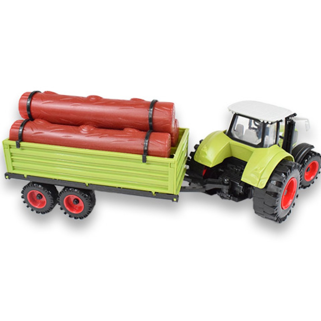 Farm Truck Series: Zöld utánfutós rönkszállító traktor 47cm
