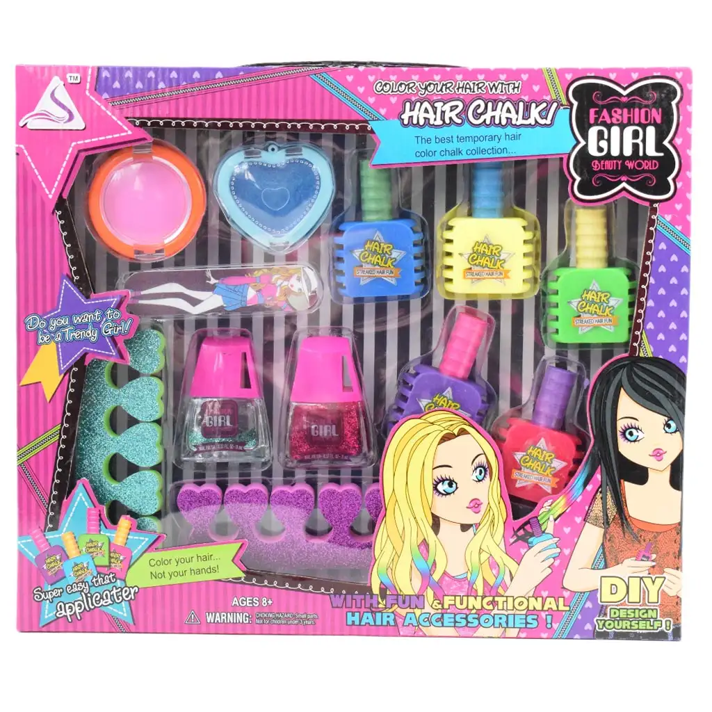 Fashion Girl: Sminkszett hajkrétával, sminkekkel és ujjelválasztó szivaccsal
