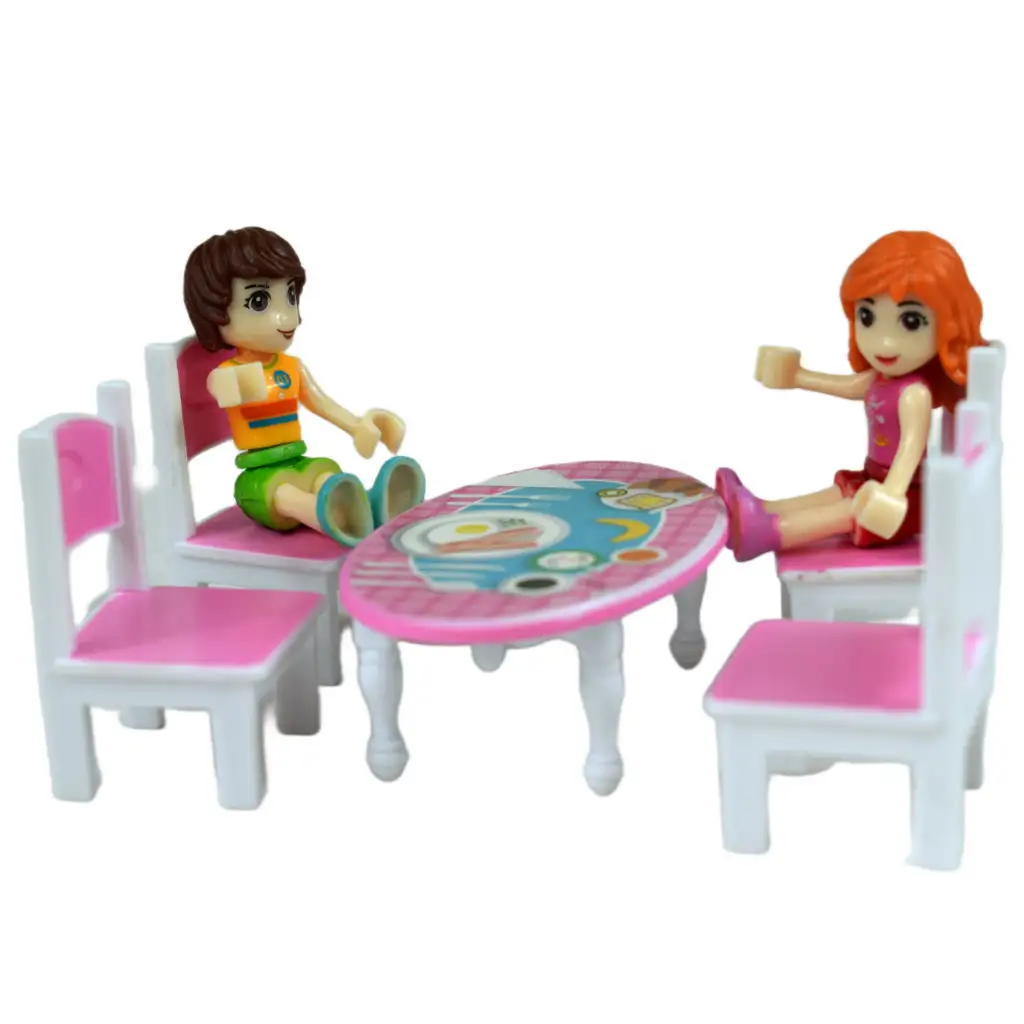 A szett továbbá tartalmaz egy lenyűgöző helikoptert is, amely szintén rózsaszínben pompázik. Ezzel a helikopterrel és a mellékelt kiegészítőkkel káprázatos kalandokat élhetnek át együtt. Az asztal és a hozzá tartozó székek lehetővé teszik a játék szervezését és az autóversenyek lebonyolítását, miközben a két játékfigura pedig életre kelti a történeteket és lehetővé teszi, hogy szórakozásban és kreativitásban gazdag játékokat hozzanak létre.
