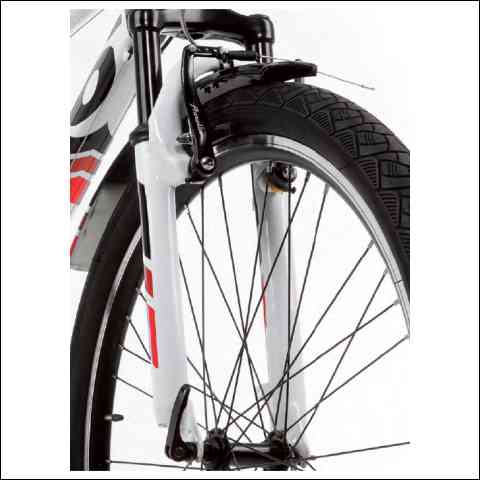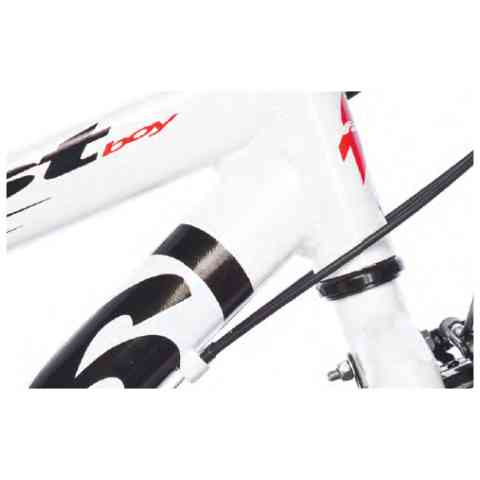 A fehér színű fényezésen tetszetős minta kapott helyet megy a dizájn mellett a jól láthatóságot is szolgálja, hogy a kerékpár könnyen észrevehető legyen a forgalomban.