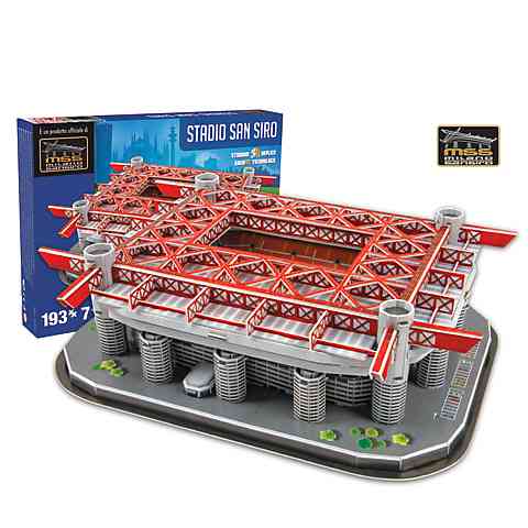 Olaszország leghíresebb klubjai közül a két milánói egyesület osztozik a San Siro vagy más nevén Giuseppe Meazza Stadionon, melyben jelenleg az AC Milan és az FC Internazionale játssza hazai mérkőzéseit. Az 1925-ben épített stadion a világ leghíresebb stadionjai közé tartozik, ahol telt házkor közel 83 ezer ember foglal helyet a nézőtéren. A különleges 3D puzzle szettel most felépítheted a stadion kicsinyített mását, így otthonodban díszeleghet kedvenc csapatod szentélye. Illeszd össze a 193 elemet és máris kész a saját stadionod!