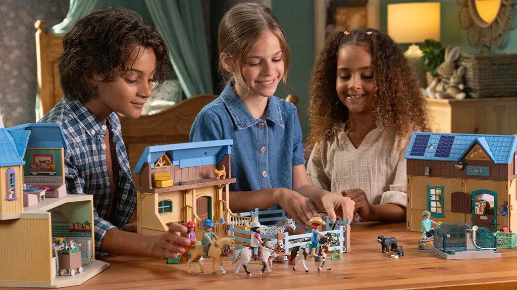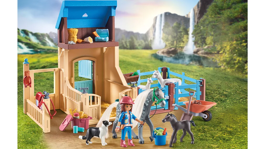 Pattanj fel a nyeregbe és készülj fel egy képzeletbeli utazásra a Playmobil varázslatos Vízesés Lovasfarm szettel. A gyerekek csatlakozhatnak Isabellához, Zoéhoz, Benhez, Ameliához, Ellie-hez és azok csődörjeihez és csikóihoz a véget nem érő szerepjátékok kalandjaiban. A hatalmas, 264 darabos Vízesés Lovasfarmtól kezdve a Lovasterápiás és az Állatorvosi Praxis készletig, a gyerekek felfedezhetik a farmon való élet minden izgalmát.