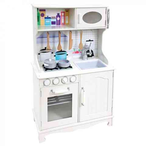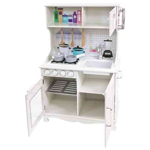 Egy olyan kis mesterszakácsnak, mint amilyen te is vagy, nem hiányozhat a szobájából egy jól felszelet kis konyha. Ez a szuper fából készült konyhapult pont olyan mint az igazi, hiszen minden szükséges dolog megtalálható benne. A sütő és főzőlap legalább olyan nélkülözhetetlen, mint amilyen a mikrohullámú sütő. Az edényekben hamar nekiállhatsz a legfinomabb ételek elkészítéséhez, amihez a fakanalat és a többi kiegészítőt is használhatod. Ha végeztél, akkor szépen mosd el az edényeket, és minden visszakerülhet a megfelelő helyre.