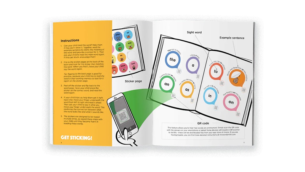 Ezek a matricás könyvek játékos, újrahasználható matricákkal segítik az olvasási folyékonyság fejlesztését. Minden szó mellett található egy QR-kód, amelyet beolvasva kiejtési útmutatóhoz juthatsz. A Sticker Book sorozat különösen népszerű a gyerekek körében, hiszen a tanulás élménnyé válik, miközben a matricák segítségével könnyebben megjegyezhetik a szavakat és azok helyes kiejtését. A könyvek interaktív módon ösztönzik a gyerekeket az önálló tanulásra, miközben fejlesztik a szókincsüket és a nyelvi készségeiket is.