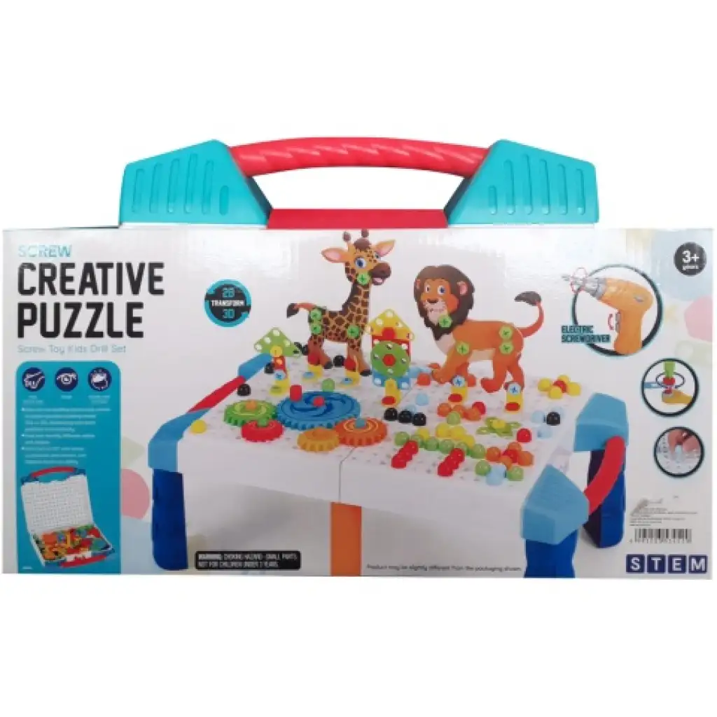 Ez a kis koffer egy nagyon izgalmas kis fejlesztő, játékasztalt rejt magában, ami mellett a gyerekek örömmel töltenek el akár órákat is, elmerülve az alkotás folyamatában. A koffert szétnyitva, a lábakat behelyezve egy remek kis asztalt kapunk ami már önmagában is egy megfelelő játszófelület a gyerekek számára. Azonban a készletben több mint kétszáz darab színes építőelem is helyet kapott, így felkerülhetnek az asztalra a fogaskerekek, és a különféle építmények is. A játék remekül fejleszti a gyerekek finom-motorikus készségét, az ügyességét, a kreativitását és a műszaki érzékét is.