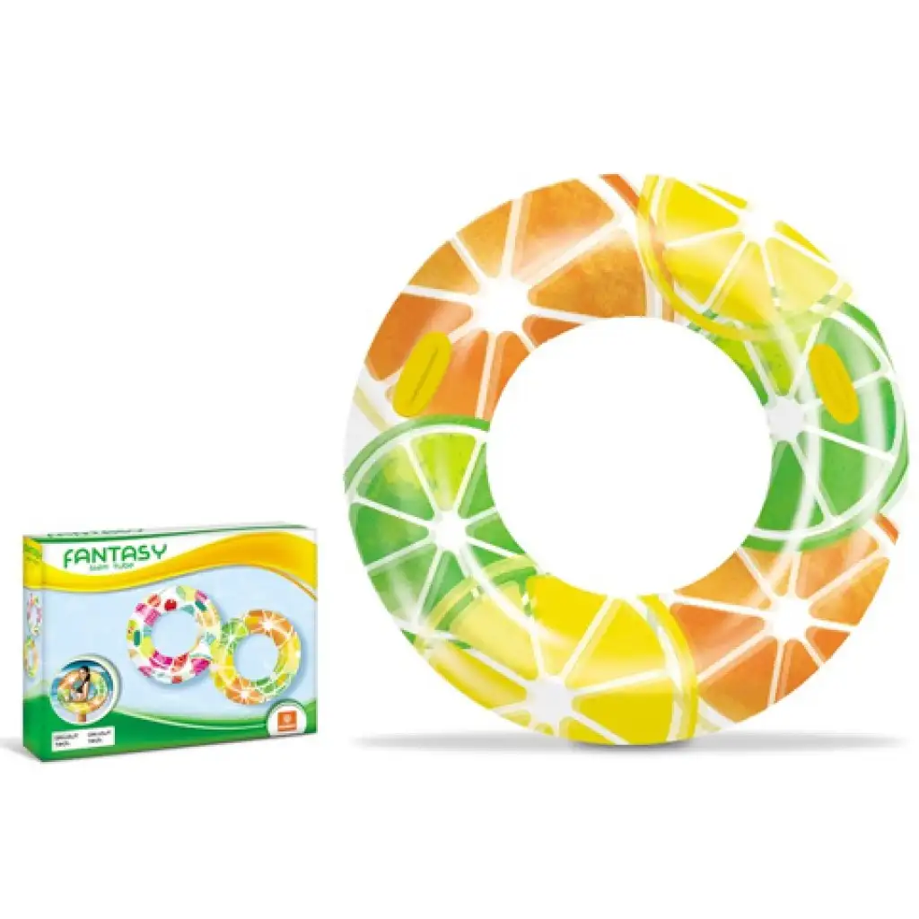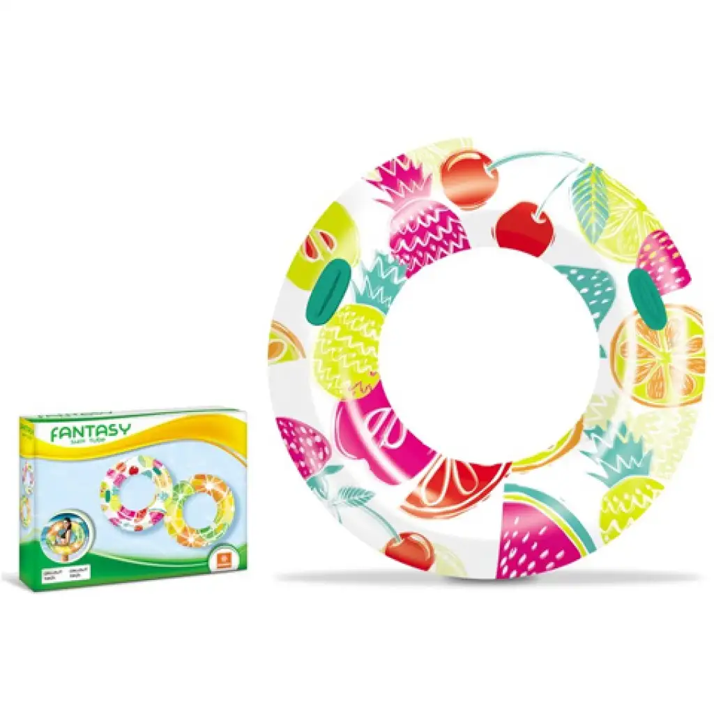 A nyári hőség elől biztosan szívesen menekülsz Te is a vízpartra, hogy hűsölhess egyet. Ha nem tudsz úszni, vagy csak inkább pihennél a vízben, akkor egy úszógumira lesz szükséged. Ennek mérete több mint 100 cm, mellyel így kényelmesen lustálkodhatsz, de akár játszani is tudtok vele, hiszen középső karikáján könnyen átbújhatsz, így partról is ugrálhattok bele. Mintája nagyon csajos, és biztos tetszeni fog majd. Az úszógumi két féle változatban érhető el, melyek mind gyümölcsöket ábrázolnak.