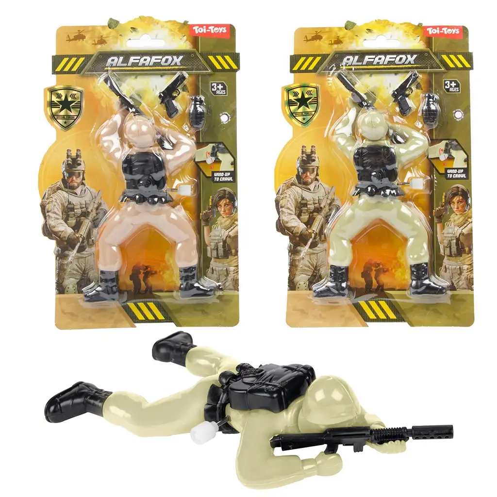 Készülj fel az izgalmas küldetésekre a Felhúzható katona figurával! Ez a játék kétféle színben érhető el, és véletlenszerűen kerül kiválasztásra, így mindig meglepetés, hogy melyik bátor harcos csatlakozik a gyűjteményedhez. A felhúzható mechanizmusnak köszönhetően a katona figura mozog, akár egy igazi kommandós: hason kúszik előre, készen állva a bevetésre. A valósághű kialakítás és a részletes kiegészítők segítenek a gyerekeknek újrajátszani izgalmas katonai akciókat, vagy saját történeteket kitalálni. Ideális választás mindazoknak, akik szeretik a kalandos játékokat és a katonai témájú szerepjátékokat.