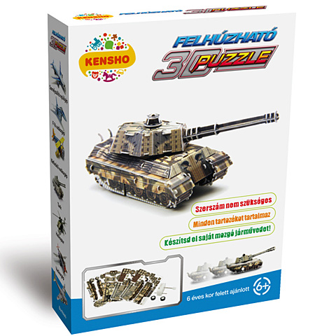 Építsd meg 3-dimenziós puzzle elemekből a saját Királytigris tankodat, melyet a második világháborúban használtak. A látványos tankot sajátkezűleg építhetik meg a gyerekek, melyhez kizárólag a szett 3D elemeit kell használniuk, nincs szükség szerszámra vagy ragasztóra. A felhúzható tank mozgatható is, így az az összerakás után is remek játékélményt tartogat a gyerekeknek. A tank megépítése remekül fejleszti a gyerekek kézügyességét.