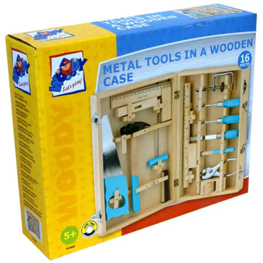 Fém szerszámok fa dobozban 16 darabos - WoodylandFém szerszámok fa dobozban 16 darabos - Woodyland