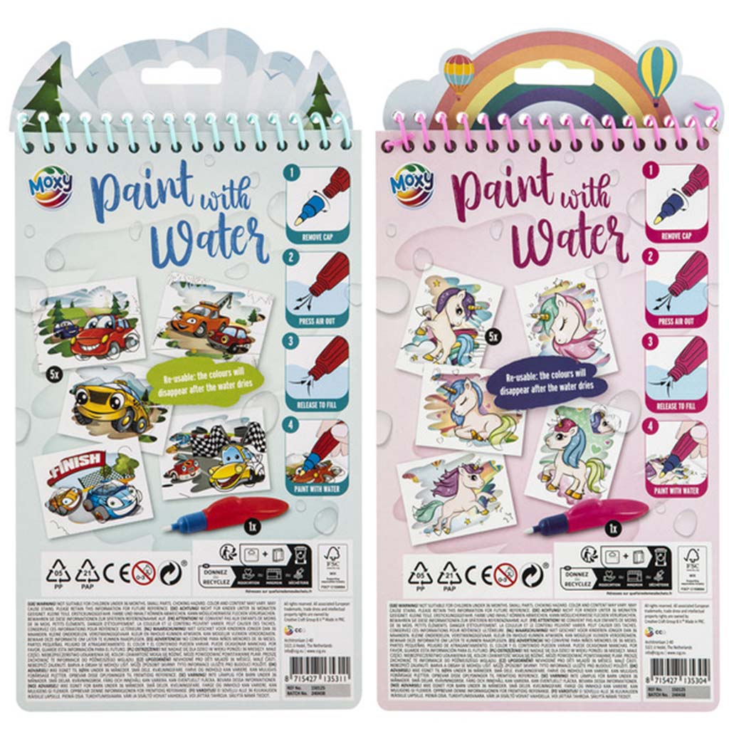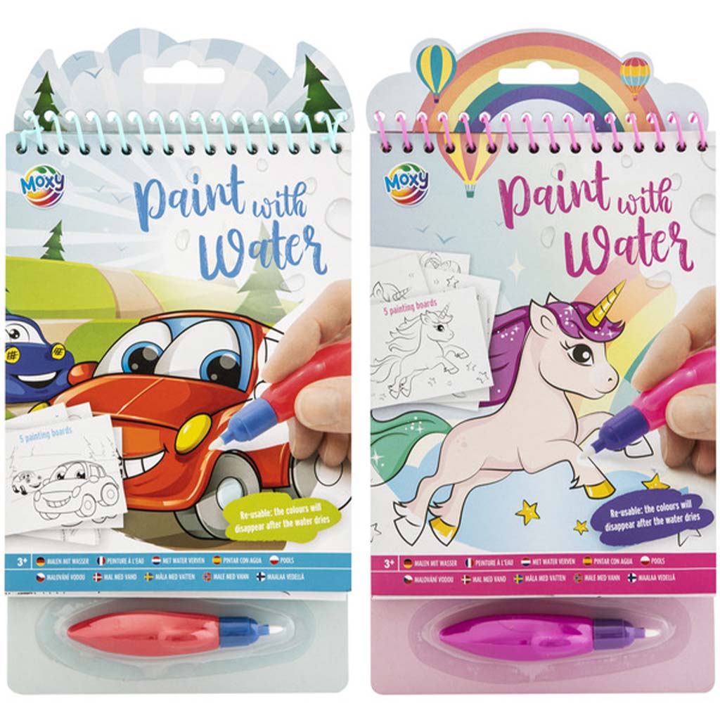 A „Fess vízzel” 5 lapos kreatív spirálfüzet fantasztikus játékélményt nyújt már 3 éves kortól! Ez a különleges foglalkoztató szett varázslatos módon kelti életre a színeket – csak egy kis vízre van szükség hozzá, semmi festék, ecset vagy maszat! A gyerekek a mellékelt vízzel tölthető toll segítségével húzhatják végig a színezőlapokat, melyek varázslatos módon kiszínesednek, ahogy a víz érinti őket. A legjobb benne, hogy amint a víz megszárad, a kép újra eltűnik, így a móka újrakezdhető – újra és újra!
