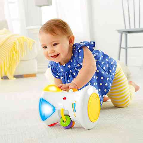 Az ülő babák ütögethetik a dobot vidám zenéért vagy táncoló fényekért, két különböző beállításban. A Drum Beat (Dobpergés) beállításban a baba dobolhat a táncoló fényekért és más-más dobpergésért minden alkalommal! A Jam-Along (Együtt zenélés) beállításban a baba hozzáadhat mókás dobpergéseket és egy dalt, hogy megalkossa a saját dallamát! Amikor készen áll arra, hogy másszon, a baba kergetheti a guruló dobot, miközben zene és fények jutalmazzák és ösztönzik, hogy tovább másszon! Ráadásul, dundi csörgőgyöngyök és egy színes, ütögethető pörgő labda is van rajta, hogy még több feladat szórakoztathassa a babát!