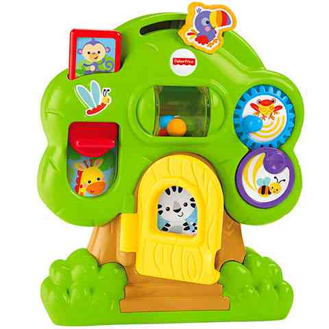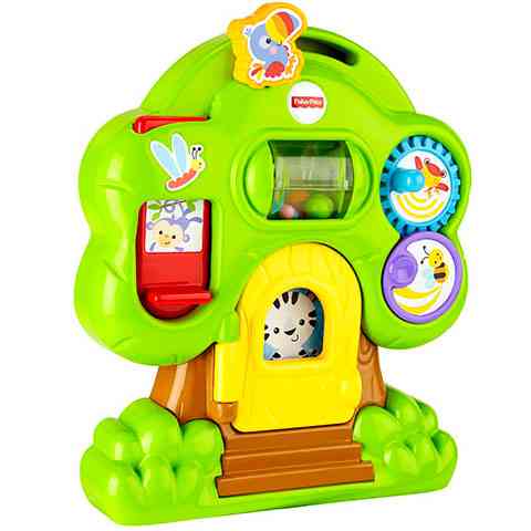 A fa alakú házikó részeinek mozgatásakor mindenféle géphangok hallhatók, és a részek különböző kézmozdulatokat igénylő mozgatása ragyogóan fejleszti a finommotoros készségeket. Nyitható-csukható ajtó, tologatással eltüntethető és visszavarázsolható állatkák, ütögetéssel forgatható henger színes gyöngyökkel a belsejében, forgatható fogaskerekek, tologatáskor kattogó madarak... A Fisher-Price által gyártott Állatos felfedező faházban lakik a baba sok-sok kis barátja, állatpajtása.