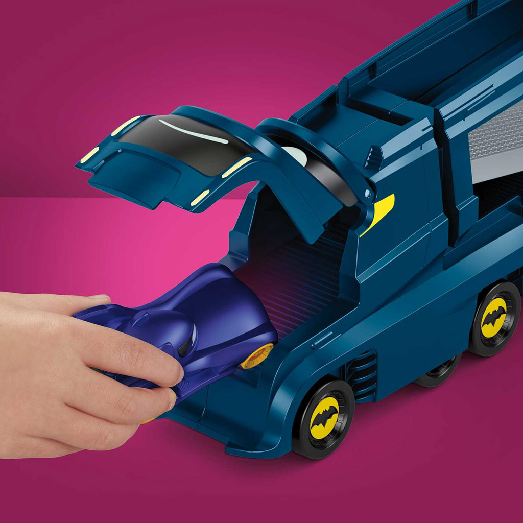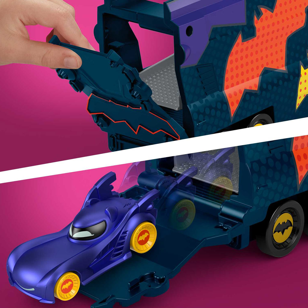 Gotham cityben folyton zűrzavar támad és csak a Batwheels kisautók tudnak segíteni. A Batwheels Bam szállítóautó gördülő kerekeivel, nyitható részeivel és rámpáival szuper történeket inspirálhat, sőt az 1:55 méretű népszerű karakter kisautókból akár 7 darabot is képes szállítani.
