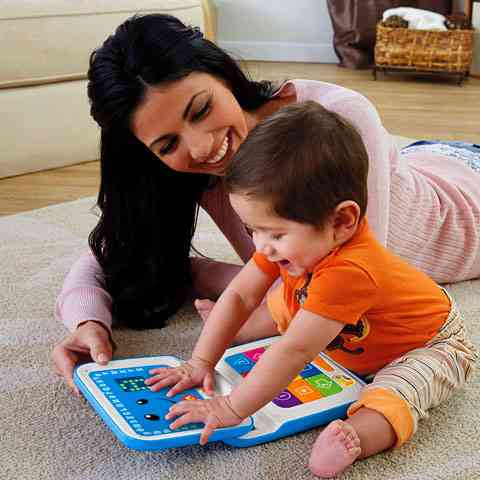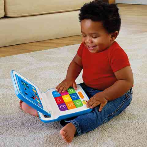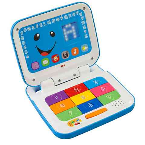 Az interaktív laptop mozgalmas játékká varázsolja a tanulást! A laptop betűkről, számokról, színekről stb. szóló dalokkal és kifejezésekkel reagál, amikor a baba nyomogatja a kilenc számbillentyűt, illetve ide-oda billegteti a szóköz billentyűt. Fedelének felnyitásakor és lecsukásakor a laptop még egy ellentétes jelentésű szópárra is megtanítja a babát. A LED-es kijelzőn sorra csupa érdekes kép és mintázat rajzolódik ki. Lapos kialakításának köszönhetően kényelmesen hordozható a kézbe simuló fogantyúnál fogva.