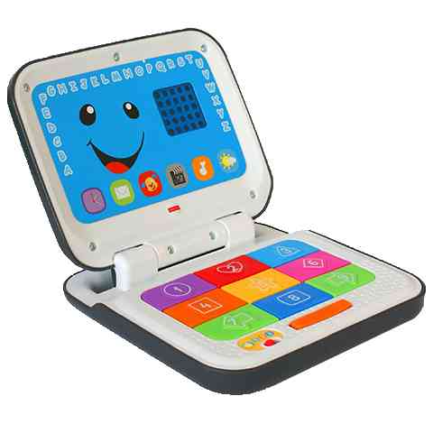 Az interaktív laptop mozgalmas játékká varázsolja a tanulást! A laptop betűkről, számokról, színekről stb. szóló dalokkal és kifejezésekkel reagál, amikor a baba nyomogatja a kilenc számbillentyűt, illetve ide-oda billegteti a szóköz billentyűt. Fedelének felnyitásakor és lecsukásakor a laptop még egy ellentétes jelentésű szópárra is megtanítja a babát. A LED-es kijelzőn sorra csupa érdekes kép és mintázat rajzolódik ki. Lapos kialakításának köszönhetően kényelmesen hordozható a kézbe simuló fogantyúnál fogva.